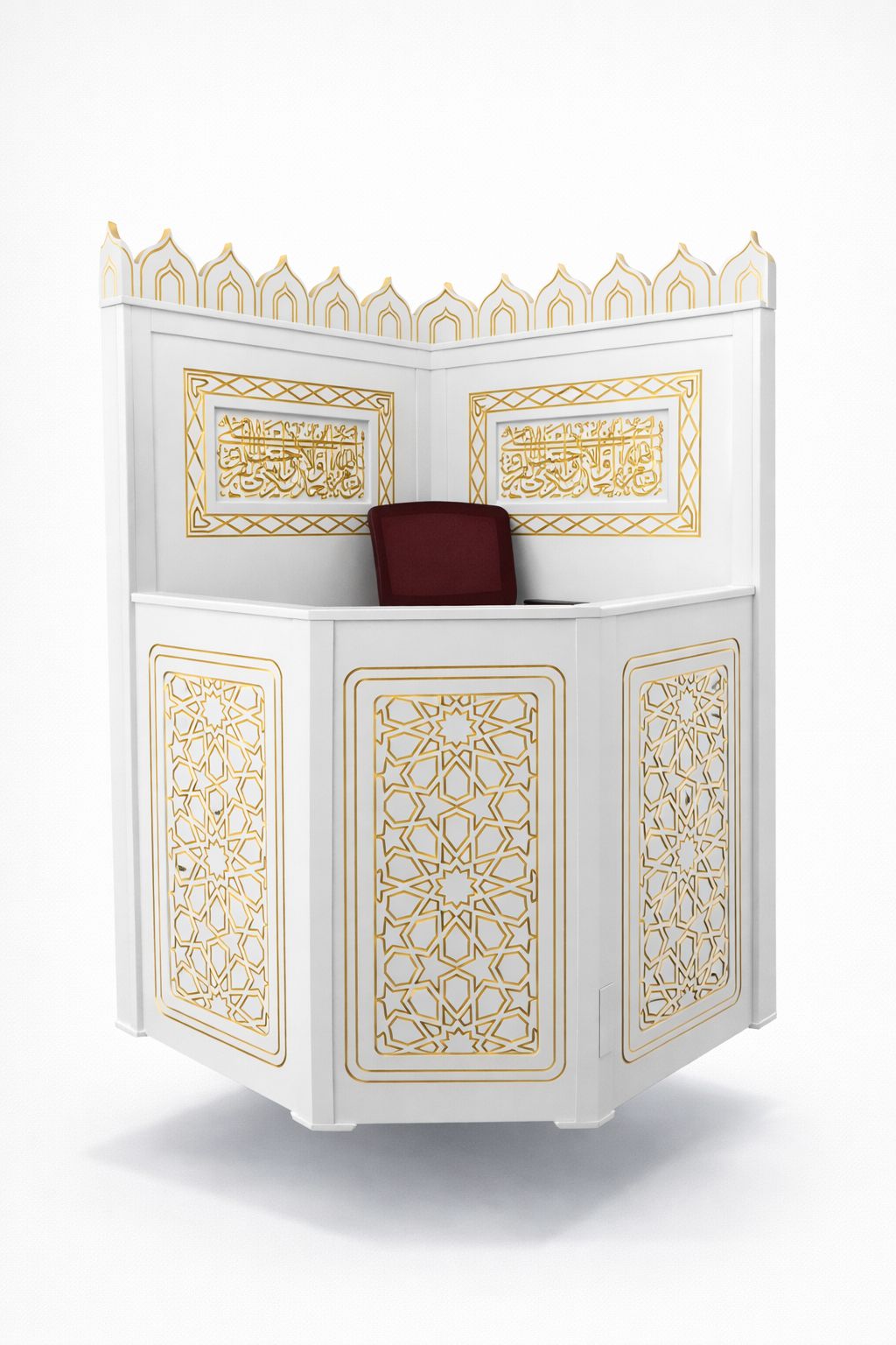 Kürsü, minber ve mihrabı tek bir tasarımda buluşturan bu özel model; estetik, sağlamlık ve işlevselliği bir arada sunar.